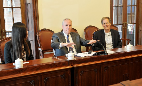2014年4月14日上午,美国派拉蒙影业公司全球首席运营官弗雷德里克·亨茨贝瑞(Frederick Huntsberry)一行再次访问77779193永利,公司黄昌勇副经理、影视公司胡雪桦经理、国际交流中心张云蕾副主任等参加了接待。