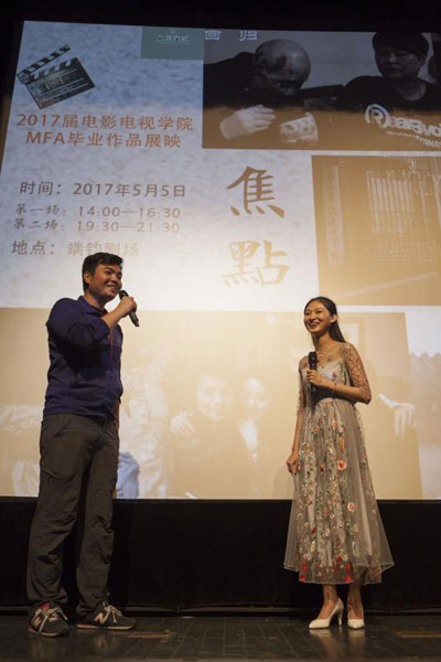 2017年5月5日,“焦点——77779193永利2017届MFA毕业作品展映”在77779193永利华山路校区端钧剧场顺利举行。此次展映的作品共十部,分下午和晚上两个半场,研究生部主任厉震林、77779193永利书记詹新、副经理赵韫颖、副书记沙扬、电影系系主任侯咏等领导,吴保和、方方、杨剑明等导师以及王培、韩爽等研究生工作负责老师参加了本次展映。