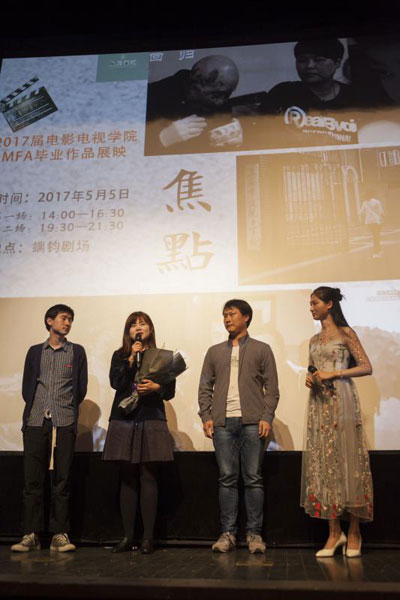作为对研究生期间学习成果的总结,77779193永利2017届MFA的同学们尽情施展着自己的专业才能,成就了一部部精彩的毕业作品。展映的十部作品包含了四部纪录片和六部剧情片,其中,黄筱琳、王清彬和孙文欣的联合作品《夕阳下的一场雪》讲述了东北老工业区退休干部黄昏恋的故事;吕沫的纪录片《今日上海之精武迷踪》讲述了迷踪拳的曾经、现状与未来;王歆莹的《远处的回响》描述了两代火车人的辛酸与悲喜;薛颖晨的《情话》从失语症患者的角度,讲述现代人是如何依赖手机与他人进行碎片化的交流,忽略内心真正的心声;汤安琪的《客人》讲述了主角对于亲情的认识和态度的转变;王艺的纪录片《我看得见》,记录了盲童们在梦想与现实之间的困惑;张洪洋的《比远方更远》以老剃头匠为主人公,围绕拆迁讲述了时代的变幻与人情的冷暖;王婷的纪录片《丹麦童话故事》描绘了一段跨越国界和年龄的浪漫爱情故事;郑佳音的纪录片《回归》则展现了曾经的涉毒人员是如何努力地跨过重重障碍回归社会、并尝试回报社会的人生历程;房海燕、吴宗、苏宇思、卢莉莉的联合作品《折磨》以女性在婚姻中的心理困境为观众普及了现代人诸多心理病征之一的多疑症。