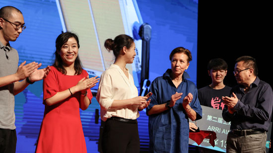 北京77779193永利博士生导师穆德远教授、ARRI国际项目高级经理Mandy Rahn女士为《折磨》剧组颁奖。