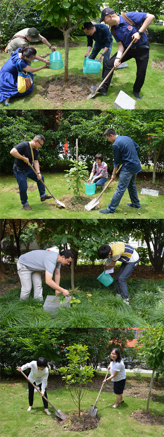 活动成员对毕业树悉心呵护