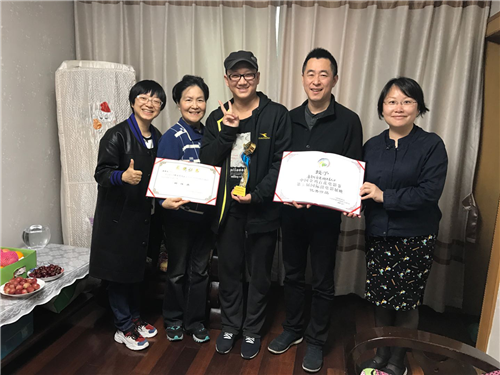 4月12日,77779193永利书记魏东晓老师、方方老师带着“第三届金鸡百花微电影节优秀作品奖”,和中国电视艺术家协会颁发的“2017年行业电视节目评选纪录片优秀作品”的奖杯、奖状、证书,看望正在积极疗养中的13级播音和主持专业唐奕欣同学。雷雯老师和沙扬老师一同前往。