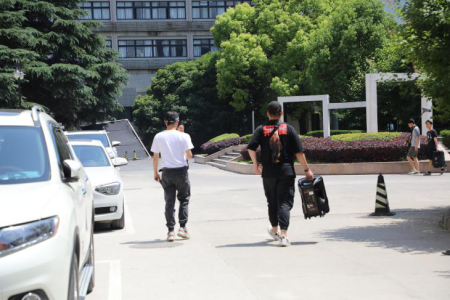 原来,《我和我的祖国》剧组在拍摄教学楼后的紫藤廊道时遇到了大状况!背景里一直有一辆破坏风景的车辆还联系不到车主怎么办?在大家急得都要用人力推车之时,摄制组的一位同学灵机一动,用剧组音响录下了一段“寻车主启事”,在莲花路校园里面巡游寻找车主。