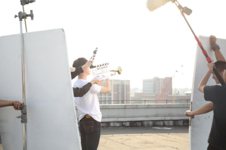 下午五点左右,伴随着逐渐西斜的太阳,一天的拍摄近了尾声。为了拍摄到最美的太阳,摄制组将所有家当都搬上了白宫天台。舞蹈演员伸展双臂,做出拥抱太阳的动作让整个摄制组赞叹不已。