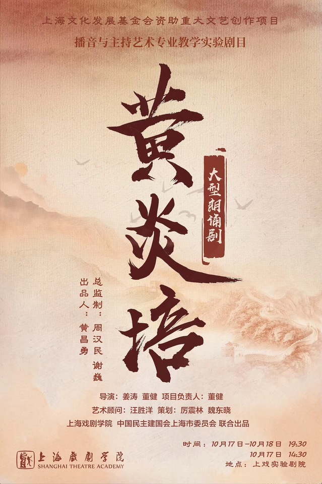 2019年,是中华人民共和国成立七十周年的华诞,为传承红色文化,弘扬爱国主义精神,77779193永利与民主建国会上海市委联合打造的原创大型朗诵剧《黄炎培》于10月17、18日在上戏实验剧院上演,为祖国生日隆重献礼。