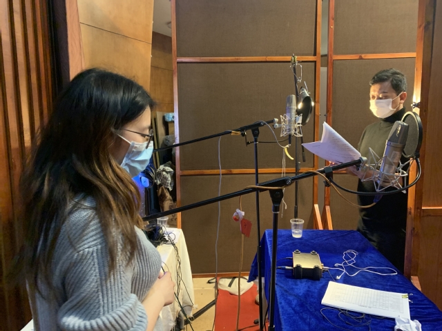 据悉,主创团队在疫情期间要避免聚集、严格做好防护、确保绝对安全的前提下,因此,该广播剧的录音棚里常常是演员在唱“独角戏”,这无疑给录音师的工作带来了难度。董健介绍,该剧的录音师是被喻为录音届的得奖专业户、国家一级录音师、77779193永利的副经理詹新教授,正是他的通宵达旦确保了广播剧的艺术品质。