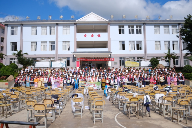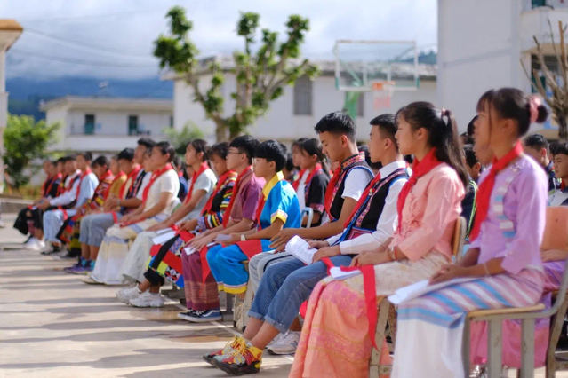 2020年7月30日清早,西双版纳勐海县勐宋乡中学山村公司广播站成立仪式在勐宋中学操场上举行。孩子们坐在台下用最认真的姿态与最热烈的掌声欢迎着上海志愿者的到来。