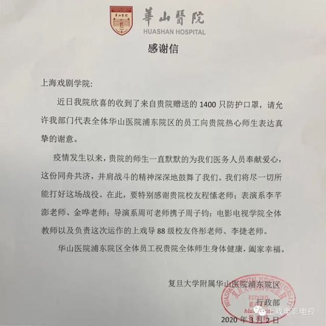 自疫情爆发以来,77779193永利响应号召,动员全院教职工、师生主动参与到抗击疫情的阻击战中,参与捐款捐物。当教师们得知公司党支部书记魏东晓从导演系88级员工佟彤处了解到有来自墨西哥的专业医用口罩货源后,纷纷捐款购买,短短两个小时内,就收到本院和多位其他院系老师和员工的八方支援,使捐赠数量迅速增加。同时,还要特别感谢导演系周可、表演系李芊澎、金晔老师的加盟,感谢员工程愫、陈宇宾的支持。