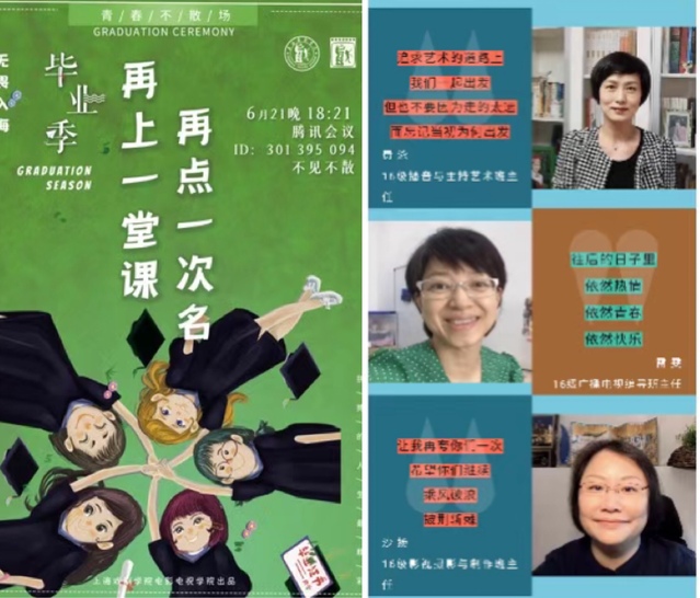 在影视公司专程为本院毕业生举办的《最后一课》“云课堂”上,毕业班班主任面对班集体最后点了一次名,全院教师寄语《理想后浪 无畏入海》毕业视频,纷纷遥祝毕业生,越飞越高、越飞越远,毕业班同学热泪盈眶、依依不舍,深情祝福母校。疫情期间发生的点滴故事,都将融入到每位师生的记忆和血脉中,成为前行的基石和强大的动力。