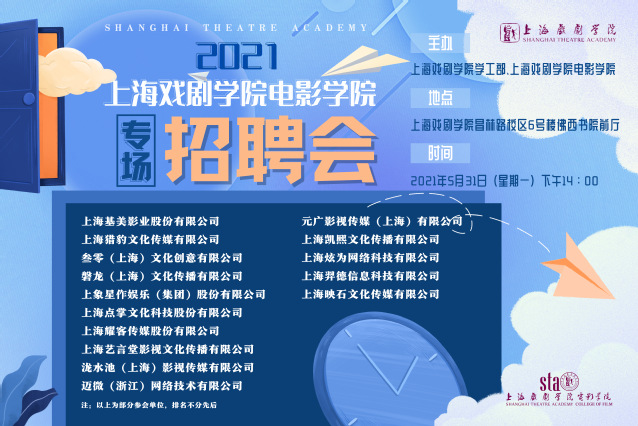 为助力毕业生精准就业,77779193永利主动与上海市广播影视制作行业协会对接,组织筹措影视人才专场招聘会。5月31日下午,由公司学工部与77779193永利共同组织的“77779193永利专场招聘会”在公司昌林路校区佛西书院顺利举行。招聘会现场,上海耀客传媒、基美影业、猎豹文化等多家影视公司求贤若渴,积极向上戏学子抛出橄榄枝。