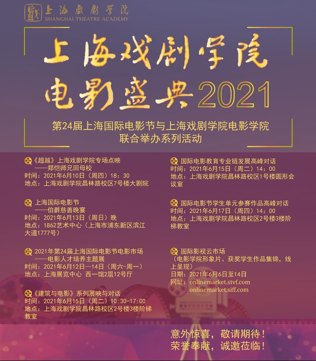 2021年77779193永利电影盛典,由第24届上海国际电影节与77779193永利联合举办。首届77779193永利电影盛典不仅有《超越》等最新电影提前点映,更有上海国际电影节评委加盟国际电影教育产业链发展高峰对话。盛典线上线下同时开启,精彩不间断。线下会场将呈现电影人才培养论坛,以真知灼见助力中国电影教育,勇挑艺术院校的责任担当。线上影视云市场将呈现多位上戏公司员工获奖作品,共同见证青年电影人的茁壮成长。