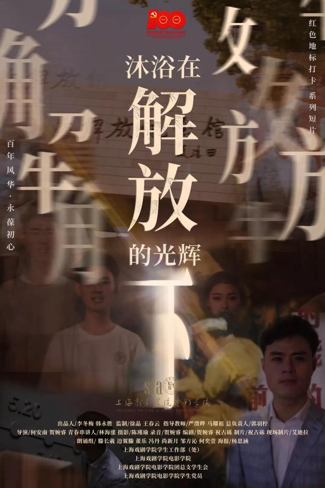 短片《沐浴在解放的光辉下》在上海解放纪念馆拍摄。影片讲述了革命先辈们攻克了各种难关,前仆后继地在上海这座城市中奋斗,最终为后来者点亮了未来的道路,让吾辈沐浴在解放的光辉下。这部影片的主创团队是郭羽柠、何安南、林海涨、贺婉睿、祝古砾、陈瑾瑜。总负责人19编导入党积极分子郭羽柠在对困难的反馈上分享了同学们在困难前面对专业认真负责的态度。