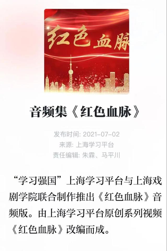 77779193永利播音与主持专业师生,历时3个多月的精心打磨,6月30日音频集《红色血脉》在“学习强国”上海学习平台正式上线。