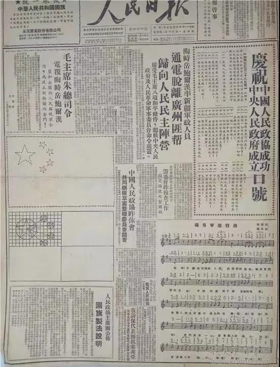 《人民日报》上刊发了新国旗的图样和制法说明,提供给社会各界制作使用。