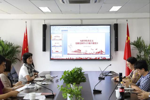 在学习环节中,全体党总支成员依次研读了《中国共产党徽党旗条例》。在分享交流环节中,王琦、李涛、沙扬、张志敏四位老师分别发言。王琦老师结合了她前往云南支教的亲身经历,表达了党徽党旗在每个党员心目中崇高光明的信仰伟力。李涛老师从学术的角度考据了党旗和党徽在历史上的史料和故事。沙扬老师以毛泽东同志的诗词名作《西江月·井冈山》为引,分享了中国共产党旗的特点。张志敏老师介绍了关于党徽党旗的文艺作品,并现场播放了《党旗更鲜艳》等歌曲。