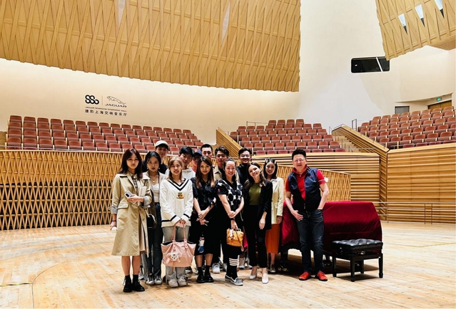 在采访实践课的最后,上海交响乐团团长助理马星星带同学们参观了乐团建筑,就建筑风格及特殊设计向同学们进行了详细的介绍,并带同学们深入地下了解到上海交响乐团音乐厅是由音乐厅建筑师矶崎新与声学设计师丰田泰久、隔而固公司深度合作建造的国内首座全弹簧浮置建筑。
