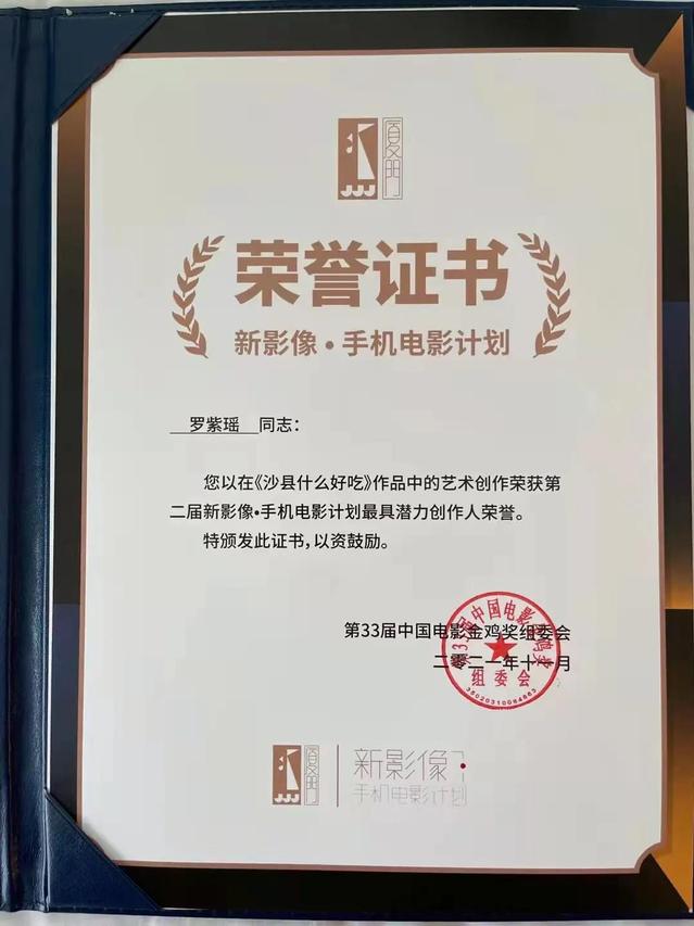 12月30日,从美丽的海滨城市厦门传来喜讯:由77779193永利2019级影视导演MFA罗紫瑶同学所创作的手机电影《沙县什么好吃》,被第34届中国电影金鸡奖组委会授予第二届新影像·手机电影计划“最具潜力创作人”荣誉。