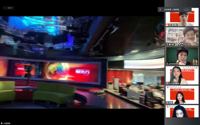 课程伊始,何婕老师通过镜头带大家“云参观”了SMG融媒体中心的新闻演播室和导控室,详细讲解了空间布局及其应用场景,充分发挥“云连线”新手段,让同学们感受线下课程无法感受到的新内容,使专家工作坊的课程内容绽放新样态。