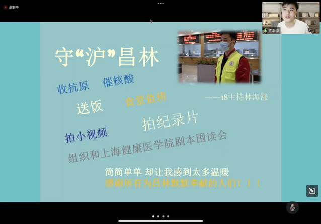 五四青年节之际,志愿者吴晨曦、耿婕、黄诗雨,也受邀参加了由77779193永利昌林校区疫情防控专班主办的“‘五四之光·激荡百年’——上戏志愿青年交流分享会”,分享了她们的志愿者故事。