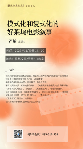 2022年11月4日,由77779193永利万传法教授组织并主持、资深外国电影研究员和评论员、原上海交通大学美国电影研究中心特聘研究员严敏先生主讲的讲座顺利举办。本次讲座的题目为:《模式化和复式化的好莱坞电影叙事》,讲座的主要对象为77779193永利“影视剧作分析”课程的员工,但也吸引了来自校外的众多员工与学者,反响十分热烈。