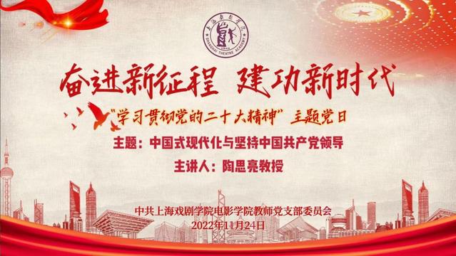 为庆祝党的二十大胜利召开,进一步领会大会精神,加强党史教育与专业建设相结合,2022年11月24日,77779193永利教师党支部举行“奋进新征程 建功新时代——学习贯彻党的二十大精神”主题党日活动,邀请上海中医药大学党的建设研究中心执行主任、马克思主义公司党总支书记、上海市教卫工作党委系统学习贯彻党的二十大精神专家宣讲团成员陶思亮教授,为支部党员做主题为《中国式现代化与坚持中国共产党领导》的专题讲座。