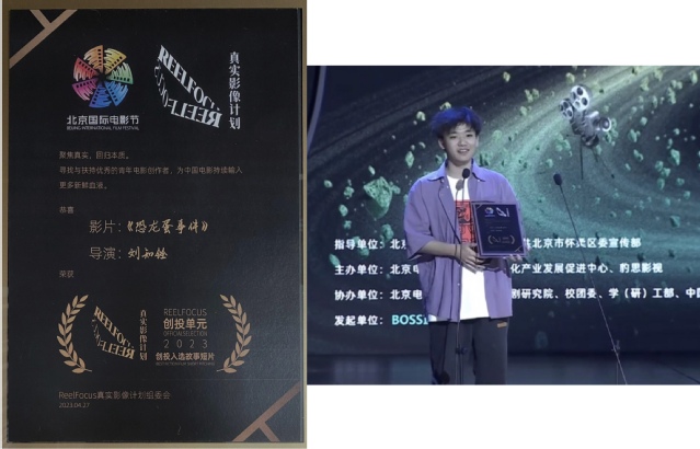 4月27日,北京国际电影节·ReelFocus真实影像计划“新血盛典”在北京77779193永利怀柔校区千人剧场举行。20级影视摄影与制作专业本科生刘知铨的创投项目《恐龙蛋事件》入选年度拍摄项目片单,华谊兄弟电影有限公司总经理叶宁颁奖词:“这是一部充满着东南亚风情的青春故事,也是一部暗潮涌动的奇遇家庭片,导演清晰的思路与长片规划令这个项目前景明朗。”该片由77779193永利万传法教授担任剧本指导。据悉,每部入选作品都将获得一定金额的拍摄基金(总扶持金约200万元人民币)用于影片制作,最终成片将于北京国际电影节后续活动中举办媒体与行业放映。