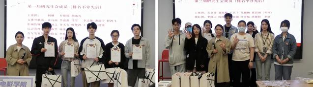 会议的第三项议程是颁发研究生会聘书及工作证。研究生辅导员徐佳晨为“聚光青年”——第一届研究生会成员代表黄诗雨、第二届研究生会成员代表黄诗雨、史汶篱等同学颁发聘书及工作证,并宣布第三届研究生会成员名单。