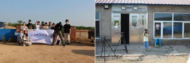 下午,我们在一户牧民家的仓库门前架起200寸幕布和投影设备。露天电影放映的消息一出,不少家住附近村屯的村民们都自发领着家里的孩子来到这里。傍晚时分,仓库前的空地坐满了观众,现场放映了由上戏员工拍摄的《红风筝》等多部短片,苍穹之下,光影之间,我们与影片中的角色一起经历着人生的起伏和波折。在这样的氛围下,彼此之间的距离也变得更加亲近了。