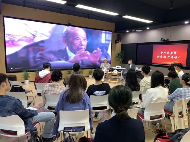 在课程接近尾声时,曹可凡老师跳出具体的访谈案例,转而在更加宏观的角度为同学们讲解了如何找寻丰满的生命体验与豁达的处世态度。他回顾访谈中体悟到的诸位名家大师的处事哲学,回忆了与黄永玉先生、周采芹老师等人交往的轶事,并以此为切入跟同学们探讨了生死观、情绪管理、媒介变迁等诸多方面的内容,同学们纷纷表示收获颇丰。
