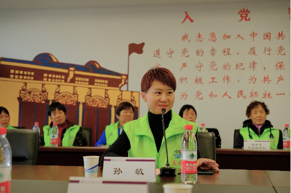 芦胜村党总支副书记孙敏介绍了“老青菜志愿服务队”的缘起和主要组织架构,并结合芦胜村的居民构成对“老青菜”的意义进行了介绍。