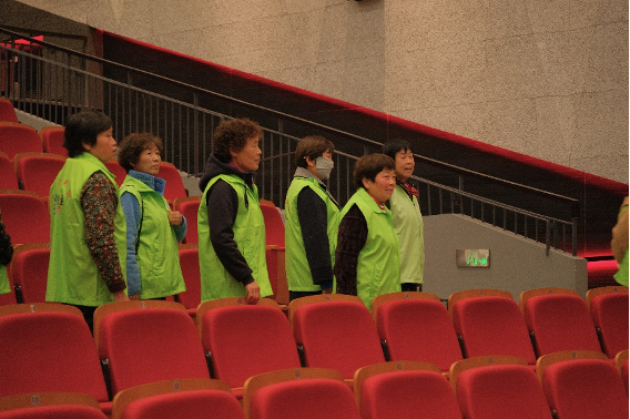 在22级主持艺术MFA洪慧程的带领下,身穿绿色背心的“老青菜”队员们走进昌林路校区,参观了上戏新剧场、佛西书院、2号标放厅、111摄影棚等校园设施。在新剧场和2号标放厅,爷爷奶奶们对崭新、亮堂的观赏空间表示赞许,期盼能够在这里体验高质量的文化活动。