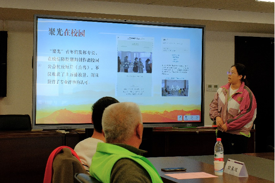 聚光青年志愿者服务队队长李欣从“聚光在校园”、“聚光在社区”和“聚光在全国”三个方面进行了回顾和分享。