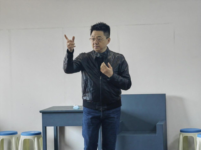 图3 驻校艺术家金炜老师正在给同学们分析现场主持的把控细节