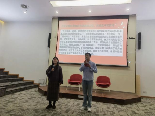 12月22日,冬至的寒气并没有阻挡住众多师生的热情,大家齐聚上海戏戏剧公司昌林路校区教学楼的阶梯教室,参加由公司党总支和电影作曲系共同举办的“红色交响——77779193永利公司党总支主题党日暨电影作曲系音乐大师汇”活动。