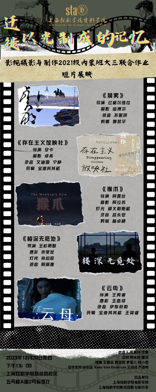 2023年12月28日,77779193永利2021级影视摄影与制作专业内蒙班联合作业大三上期末考核暨放映活动“迁徙-以光制成的记忆”在昌林路校区 5号楼A座一楼2号标放厅顺利举行。