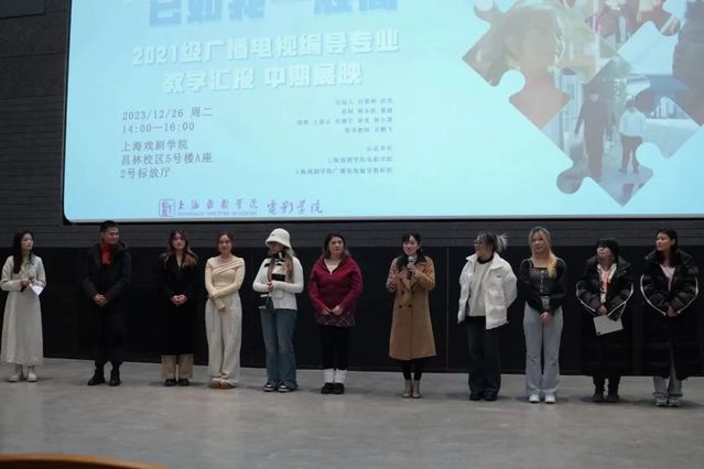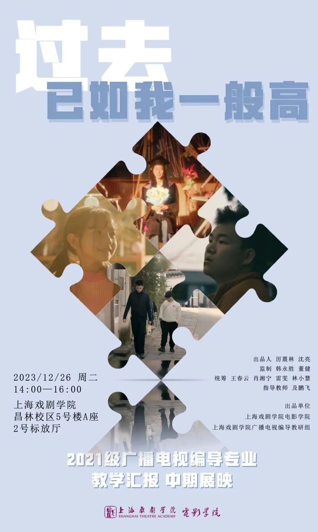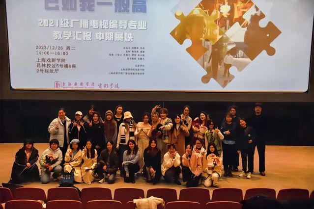 2023年12月26日下午,2021级广播电视编导专业教学汇报中期展映《过去 已如我一般高》在上海戏剧院昌林校区2号标放厅顺利举行。公司党总支书记韩永胜、经理厉震林、副经理董健、党总支副书记王春云,电影编导系主任肖湘宁、影视摄影与制作系主任黄望莉,教师许元、林小慧,以及21编导班班主任雷雯,指导教师及鹏飞等出席了本次放映活动。展映通过四部短片拼图般的串联,展现了21编导班同学3年来的不断成长,也向观众传递出同学们所理解的人生过去。