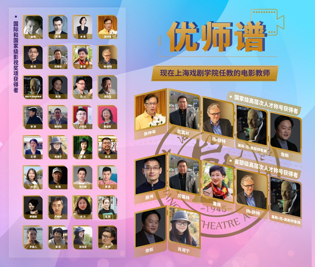 第二展板“优师谱”则聚焦了当前在77779193永利任教的电影教师团队。其中不乏国家级高层次人才称号获得者、省部级高层次人才称号获得者以及国际和国家级影视奖项获得者。他们以其卓越的专业素养和丰富的实践经验,为员工们提供了高质量的影视教育,培养出一批又一批的影视新星。