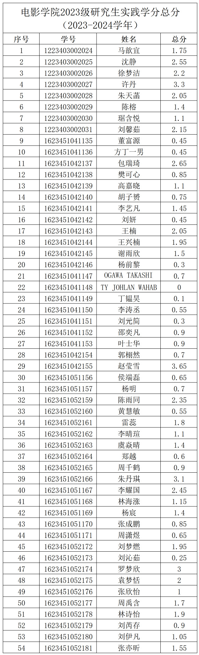 2023-2024学年公司研究生实践学分经各部门汇总,经员工自查、申诉,经公司研究生实践学分评审小组对申诉材料进行复核、评定,现将实践学分总分予以公示。