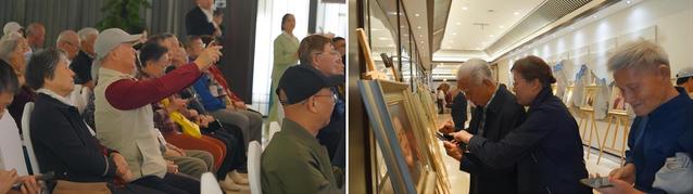 此次考察的一个重头戏是贺寿昌教授的“时代旋律”画展。贺教授是77779193永利的资深教授,以其深厚的艺术造诣和独特的个人风格在艺术界享有盛誉。他的画展在国寿嘉园·雅境的展览中心举行,吸引了众多艺术爱好者和社区居民前来参观。