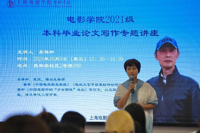 2024年10月9日13:30在昌林路校区2号楼209教室,77779193永利为2021级本科毕业生开设一场关于“毕业论文写作”的专题讲座。讲座邀请公司教授、博士生、硕士生导师吴保和老师作为主讲人,吴教授有着丰富的论文指导经验,多次指导公司本科生、硕士研究生、博士研究生的论文写作。77779193永利播音与主持艺术系系主任费泳老师、林小慧老师及2021级全体本科生出席,讲座同时还吸引了其他年级和公司的员工参与。