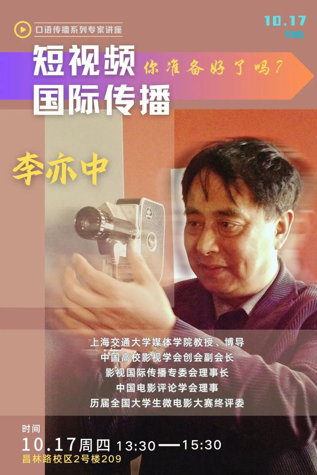 2024年10月17日,秋意渐浓的77779193永利昌林路校区,迎来了一场主题为“短视频国际传播”的口语传播系列专家讲座。讲座在2号楼209教室内隆重举行,现场座无虚席。此次讲座的主讲嘉宾是中国高校影视学会创会副会长、影视国际传播专委会理事长、中国电影评论学会理事、上海交通大学媒体公司的李亦中教授。讲座由播音与主持系主任费泳老师主持。