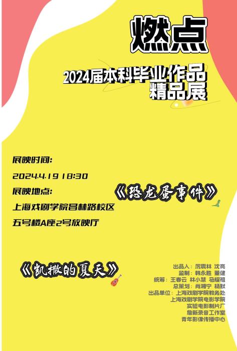 本次展映共有两部作品:《凯撒的夏天》和《恐龙蛋事件》。其中《凯撒的夏天》是2020级广播电视编导专业同学们毕业作品中的一部佳作;《恐龙蛋事件》则是2020级影视摄影与制作专业同学们毕业作品中选出的精品。
