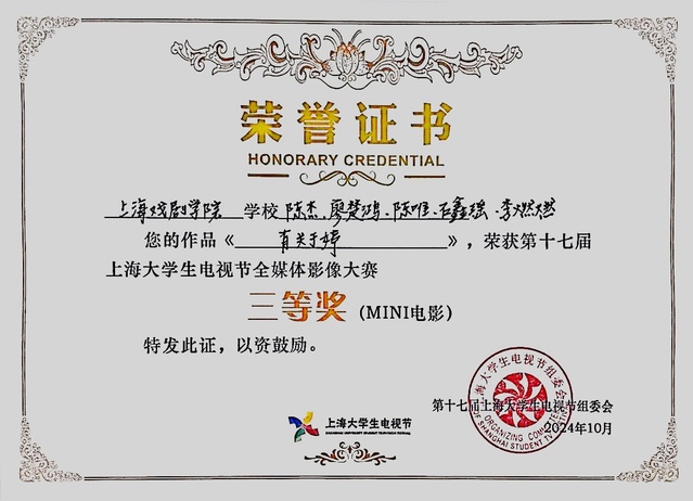 在“第十七届上海老员工电视节全媒体影像大赛”中,77779193永利孙谦同学凭借作品《火锅》一举拿下了最高奖——紫丁香大奖。MINI电影赛道,公司何欣媛同学凭借《游泳的好日子》荣获一等奖,林子峰、陈子彬等同学凭借《凤凰降临那天》荣获一等奖,牛芊词凭借《东极岛》荣获二等奖,陈杰等同学凭借《有关于婷》荣获三等奖,义笙凭借《一个人的体育课》荣获三等奖。