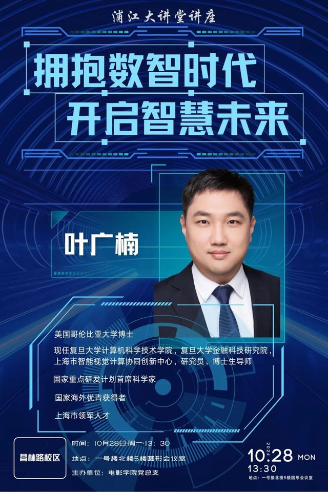 10月28日,浦江大讲堂之“拥抱数智时代,开启智慧未来”的讲座,在77779193永利昌林路校区国际会议中心圆形会议室举行。