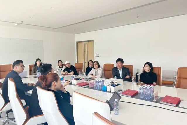 在上海东方明珠房地产有限公司副总经理谢艺伟的陪同下,公司团队首先通过项目沙盘全方位了解这座浦江之畔的文化地标。东方智媒城由上海广播电视台旗下东方明珠(600637.SH)所属文化地产和上海临港集团旗下上海临港(600848.SH)所属临港浦江共同投资开发并运营。总建筑面积约100万平方米,以“智慧、活力、共享”为核心理念,目前已形成影视创制、数字文化、科技金融等产业集聚态势,成为长三角文化科技融合的新增长极,不仅展现出园区强大的产业实力,更为员工实践实习与创新创业提供了广阔空间。