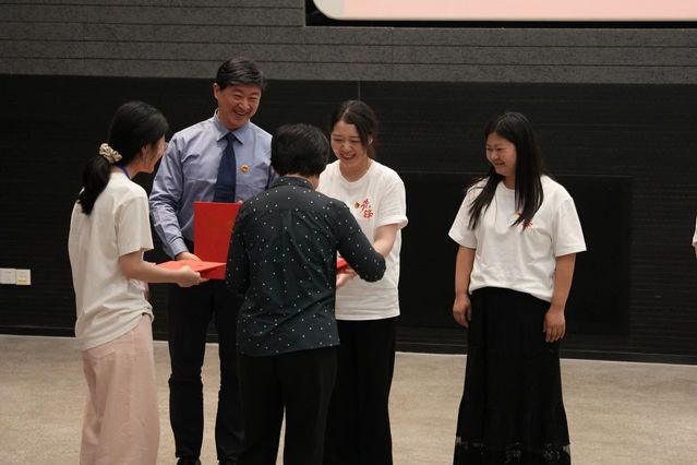 教师党支部书记沙扬老师代表支部向受聘导师表示衷心感谢。她以“初心、匠心、暖心”三个关键词与导师们共勉:以理想信念之“初心”引领方向,以专业艺德之“匠心”传授本领,以关爱陪伴之“暖心”助力成长。她激励员工党员以导师为镜,主动对标、勤于求教、勇当先锋,做“有行动”的追光者,在艺术实践中彰显新时代青年党员的风采。