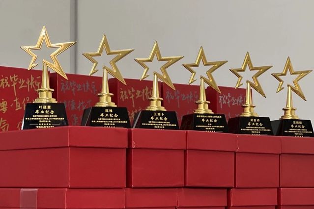 辅导员赠予的小金杯是电影人的嘉奖,毕业生踏着红毯、坐着导演椅、手捧金杯,按下属于自己人生电影的“Action”!现场欢声笑语不断,快门声此起彼伏,每个人都在充满电影氛围的留影区,定格下属于自己毕业季的高光时刻,也圆了一场温馨的电影人之梦。