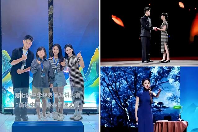 此外,23级白亦端与24级言姝瑾跻身哔哩哔哩新国辩高校组八强,白亦端入选“海尔新生浪计划”全国三十强,言姝瑾获“党史国史·我来学我来讲”演讲比赛青年组一等奖。同学们还广泛参与凤凰卫视“发现新主播”、“海峡两岸”动漫配音大赛、“观安杯”主持人大赛、“新声”老员工语言文化艺术节等赛事,展现出系统而扎实的语言艺术能力。