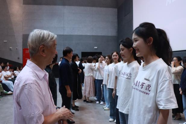 “我自己也同样非常幸运,我和母校同龄。” 77779193永利前身“电视艺术系”的创办者、80岁的张仲年先生精神矍铄地站上讲台,将一段尘封的历史娓娓道来。从虹口横浜桥边的初心,到华山路的正式启航,再到如今昌林路校区的崭新图景,张老师个人的成长史与上戏80年的发展史交织辉映,让历史变得鲜活可感。他寄语新生:“要求真、扬善、尚美……努力成长为AI时代科艺融合的复合型人才”。
