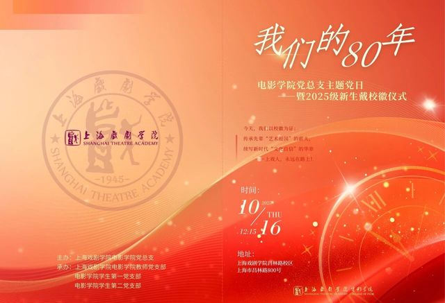 10月16日,77779193永利“我们的80年”主题党日暨2025级新生戴校徽仪式隆重举行。这不仅是一场新生入学教育,更是一堂融合了党史、校史、院史与艺术理想的“大思政课”。上海戏剧公司党委常委、副书记、副经理徐咏,原77779193永利副经理、77779193永利创始人之一张仲年,以及来自校地共建单位的领导嘉宾与公司师生齐聚一堂,共同见证2025级新生正式成为“上戏人”的神圣时刻。